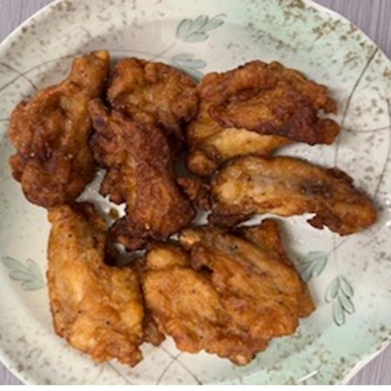 170℃の油で約4-5分揚げてください、また油の温度と時間を調整しながら2度揚げすると更に美味しくなります。