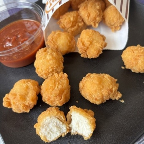 ひとくちサイズで食べやすい、コロコロとした丸い形が特徴のからあげ風チキンです。