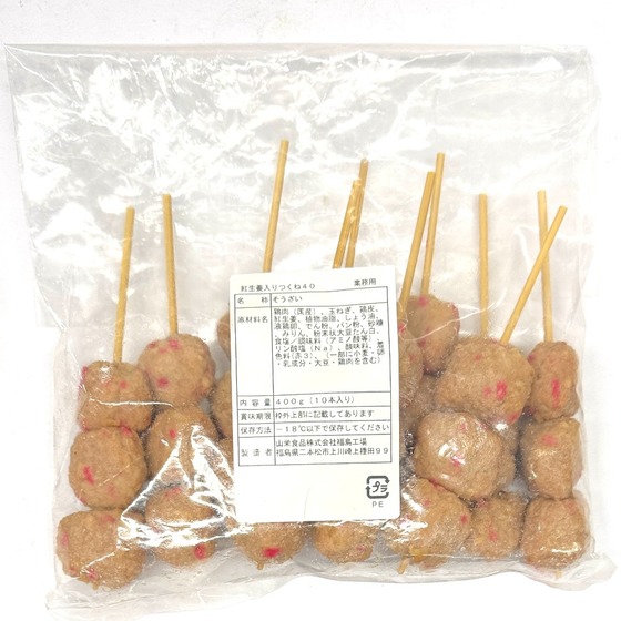 | 原材料・添加物 | 鶏肉(国産)、玉葱、鶏皮、紅生姜、植物油脂、しょう油、液鶏卵、でん粉、パン粉、砂糖、みりん、粉末状大豆たん白、食塩/調味料(アミノ酸等)、リン酸塩(Na)、調味料、着色料(赤3)、(一部に小麦・卵・乳成分・大豆・鶏肉を含む) |