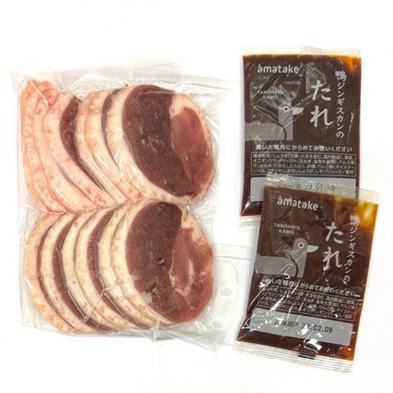 | 原材料・添加物 | あい鴨ロース肉(岩手県産) 鴨ジンギスカンのたれ<しょうゆ(小麦・大豆を含む、国内製造)、清酒、オニオンソテーペースト(玉ねぎ、食用大豆油)、りんご果汁、はちみつ、おろしにんにく、砂糖、りんご酢、オイスターソース、コチジャン、おろししょうが、レモンジュース/香料> |
