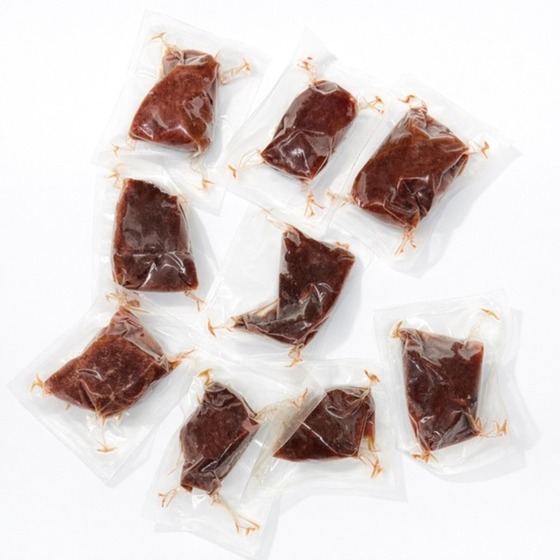 真空パックの状態で凍ったまま馬刺しを流水に約20分浸してから冷蔵庫で数時間かけて解凍しますとドリップが少なく上手に解凍できます。