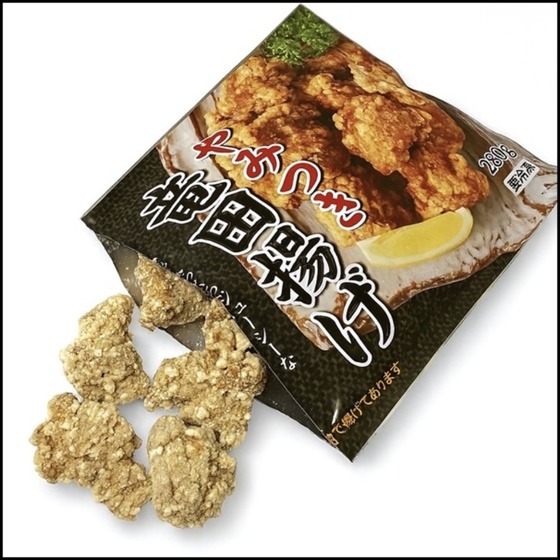 | 原材料・添加物 | 鶏肉(もも肉)、でん粉、植物油脂(大豆を含む)、小麦粉、砂糖、しょうゆ、卵白粉(卵を含む)、香辛料、食塩、加工でん粉、ポリリン酸Na、調味料(アミノ酸等)、膨張剤、増粘剤(キサンタンガム)、乳化剤、カロチノイド色素 |