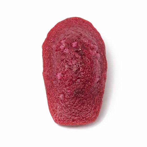 鮮やかな赤い生地にパールシュガーをトッピングした華やかさと高級感を演出できるラズベリー風味のマドレーヌです。